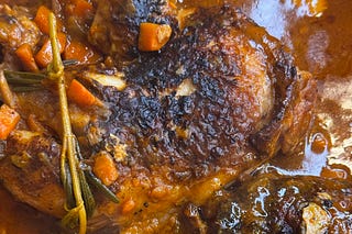 Chicken quarters braised in a deep gravy to make a comforting meal perfect for the colder months.